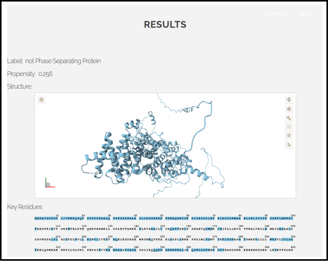 At the bottom is the visualization of key amino acids involved in driving phase seperation.